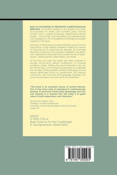 `This book is an excellent source of current information on the many roles of potassium in cardiovascular disease. It succinctly mixes basic physiology and clinical aspects in a manner that will make it of great value to both researchers and clinicians.' Norman M. Kaplan, M.D., Professor of Internal Medicine, University of Texas Southwestern Medical Center, Dallas, TX