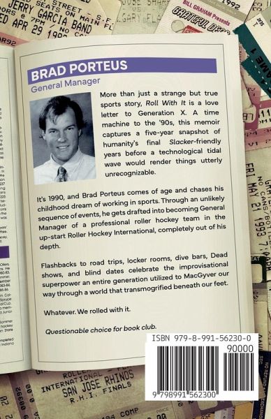 More than just a strange but true sports story, Roll With It is a love letter to Generation X. A time machine to the '90s, the memoir captures a snapshot of humanity's final Slacker-friendly years before a technological tidal wave would render things utterly unrecognizable. It's 1990, and Brad Porteus comes of age and chases his childhood dream of working in sports. Through an unlikely sequence of events, he gets drafted as General Manager of a professional roller hockey team in the zany up-start Roller Hockey International, completely out of his depth. Flashbacks to road trips, dive bars, locker rooms, Dead shows, and blind dates celebrate the improvisational superpower an entire generation utilized to MacGyver our way through a world that transmogrified beneath our feet. But, it's cool. We rolled with it. Questionable choice for book club.