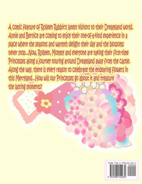 A comic feature of Rolleen Rabbit's latest visitors to their Dreamland world. Annie and Bernice are coming to enjoy their one-of-a-kind experience in a place where the seasons and warmth delight their day and the blossoms never stop...Now, Rolleen, Mommy and everyone are taking their first-time Princesses along a journey touring around Dreamland away from the castle. Along the way, there is every reason to celebrate the endearing flowers in this Merryland...How will our Princesses go about it and treasure the lasting moments?