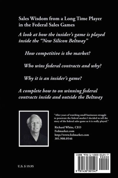 "Rolling the Dice in DC" explains the federal sales game and how it is played in the real world. The market is insider dominated partly out of necessity and partly because procurement rules are outdated. The book is written for managers and sales people, not contract administrators. It describes the day-to-day dogfight of competing and winning in the federal market. Newcomers to the market may be discouraged by some of the topics and truths discussed. Read it if you want to know the good, bad, and the ugly of the federal market, what it takes to enter the market, and the potential returns. The book is not for you if you only want to know how to pick low-hanging federal fruit and whether there is a magic bullet for entering the federal market. The focus is selling, not how to comply with federal red tape and administer federal contracts. The author is the CEO of Fedmarket.com and has more than forty years of experience in selling to the federal market.