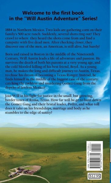 1884 Northern Mexico. Two kids are gathering corn on their family's 500 acre ranch. Suddenly, several shots ring out! They crawl to where they heard the shots come from & find a campsite with 5 dead men. After checking closer, they discover one of the men, an American, is still alive, but barely! Born & raised in Boston in the middle of the 19th Century, Will Austin leads a life of adventure. He survives the death of both his parents & the cold blooded killing of his best friend. As a young man, he makes the long & difficult journey to Austin, Texas, to chase his dream of becoming a Texas Ranger. Instead, he finds himself in the middle of the biggest case of the century: catching the ruthless & murdering Gomez Gang from the depths of lawless Mexico! Join Will in his fight for justice in the small, border town of Roma, Texas. How far will he go to hunt down the Gomez Gang & their brutal leader, Pedro, & what toll does it take on his friendships, marriage & body as he stumbles to the edge of his sanity?