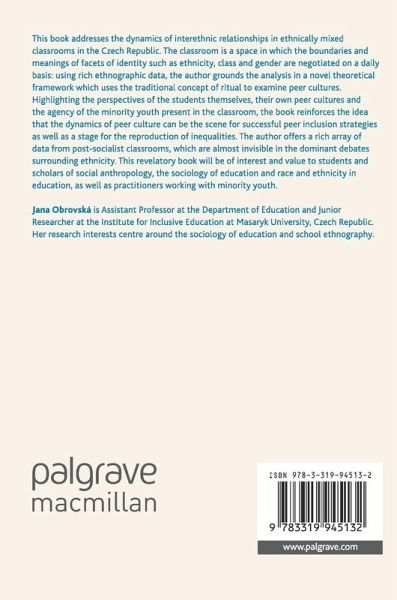 This book addresses the dynamics of interethnic relationships in ethnically mixed classrooms in the Czech Republic. The classroom is a space in which the boundaries and meanings of facets of identity such as ethnicity, class and gender are negotiated on a daily basis: using rich ethnographic data, the author grounds the analysis in a novel theoretical framework which uses the traditional concept of ritual to examine peer cultures. Highlighting the perspectives of the students themselves, their own peer cultures and the agency of the minority youth present in the classroom, the book reinforces the idea that the dynamics of peer culture can be the scene for successful peer inclusion strategies as well as a stage for the reproduction of inequalities. The author offers a rich array of data from post-socialist classrooms, which are almost invisible in the dominant debates surrounding ethnicity. This revelatory book will be of interest and value to students and scholars of social anthropology, the sociology of education and race and ethnicity in education, as well as practitioners working with minority youth.
