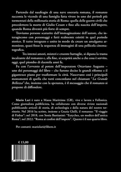 Partendo dal naufragio di una nave oneraria romana, il romanzo racconta le vicende di una famiglia fatta vivere in uno dei periodi più tormentati della millenaria storia di Roma: quella delle guerre civili che precedettero la morte di Giulio Cesare e fino alla nascita dell'impero, quando Roma diventò più forte di sempre. Troviamo persone scaturite dall'immaginazione dell'autore, che interagiscono con personaggi e fatti realmente esistiti in quel periodo storico. Il tutto integrato e unito in modo da creare un amalgama armonioso, quasi fosse la sequenza di immagini di una pellicola cinematografica. Tra intensi amori, misteri e cruente battaglie, si dipana la trama incalzante del romanzo e, alla fine, si scoprirà anche a che cosa è servito, oggi, quel piombo di duemila anni fa. Fu con l'avvento al potere dell'imperatore Ottaviano Augusto - uno dei personaggi del libro - che furono decise le grandi riforme e il gigantesco piano per trasformare la città. Nascevano così i principali monumenti di quella che tutti concordano nel chiamare "La Grande Bellezza" che, insieme con la speranza, è il messaggio che il romanzo si propone di diffondere.
