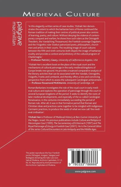 'In this elegantly written series of case studies, Yitzhak Hen demonstrates the extent to which the barbarian heirs of Rome continued the Roman tradition of making their centres of political power also centres of learning, poetry, and culture. Without denying the violence of contemporary conquest and warfare, he shows how such rulers as the Ostrogoth Theoderic, the Vandal king Thrasamund, the Frankish sovereign Dagobert, and the Visigothic ruler Sisebut patronized poets, philosophers, churchmen and artists in their courts. The resulting image of court cultures between the fifth and ninth centuries both dispels the image of barbarian crudity and provides a context and prehistory of the cultural program of Charlemagne' - Professor Patrick J. Geary, University of California Los Angeles (UCLA), USA