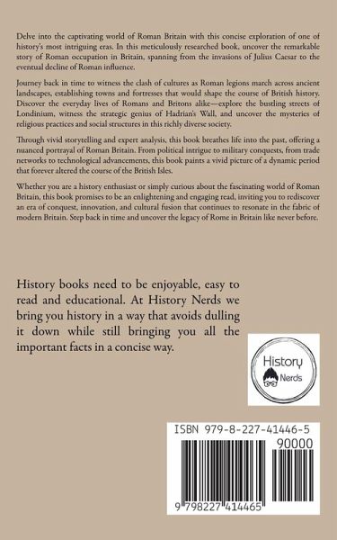 Delve into the captivating world of Roman Britain with this concise exploration of one of history's most intriguing eras. In this meticulously researched book, uncover the remarkable story of Roman occupation in Britain, spanning from the invasions of Julius Caesar to the eventual decline of Roman influence. Journey back in time to witness the clash of cultures as Roman legions march across ancient landscapes, establishing towns and fortresses that would shape the course of British history. Discover the everyday lives of Romans and Britons alike-explore the bustling streets of Londinium, witness the strategic genius of Hadrian's Wall, and uncover the mysteries of religious practices and social structures in this richly diverse society. Through vivid storytelling and expert analysis, this book breathes life into the past, offering a nuanced portrayal of Roman Britain. From political intrigue to military conquests, from trade networks to technological advancements, this book paints a vivid picture of a dynamic period that forever altered the course of the British Isles. Whether you are a history enthusiast or simply curious about the fascinating world of Roman Britain, this book promises to be an enlightening and engaging read, inviting you to rediscover an era of conquest, innovation, and cultural fusion that continues to resonate in the fabric of modern Britain. Step back in time and uncover the legacy of Rome in Britain like never before.