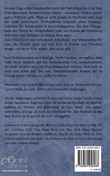 In einer Liga voller Unruhestifter sticht der Verteidiger des Cold Fury Eishockeyteams, Roman Sýkora, heraus - zumindest, wenn es um negative Publicity geht. Wenn er nicht gerade im Strafraum sitzt, sorgt der heiße tschechische Hockeydämon aufgrund seiner Frauengeschichten für Schlagzeilen in Klatschmagazinen. Bis dem Management des Teams der Geduldsfaden reißt und Roman die Anweisung bekommt, sein Verhalten zu ändern, denn sonst ... Zum Glück hat er eine verlockende Ablenkung: eine lebenslustige Barista, die Ukulele spielt und eine Seite in Roman zum Vorschein bringt, von der er nicht wusste, dass es sie gibt. Lexi Robertson kam nach Raleigh, North Carolina, um endlich ihren Vater Brian Brannon und ihre Halbschwester Gray kennenzulernen, die beide im Büro der Cold Fury-Mannschaft arbeiten. Dort trifft sie auch zum ersten Mal den sexy, einschüchternden Roman, der im Grunde seines Herzens ein großer Softie ist. Doch noch eine weitere Beziehung bahnt sich an: Brian und Georgia, Lexis Chefin im Café, fühlen sich zueinander hingezogen. Als die Spannungen zwischen Roman und Lexis neuen Familie immer weiter zunehmen, fragt sich Lexi, ob sie nur ein Spielball im Spiel der anderen ist. Verletzt und gedemütigt ist Lexi bereit, alles hinzuschmeißen, solange sie noch die Oberhand hat. Das Problem ist nur, dass Roman nicht gewillt ist, Lexi aufzugeben. Lasst euch in die aufregende Welt des Eishockeys mit dem siebten Teil der Carolina Cold Fury-Team Serie von New York Times-Bestsellerautorin Sawyer Bennett entführen. Taucht ein in die Welt des Profisports und erlebt hautnah, wie Roman sein Herz an Lexi verliert und um seine Träume kämpft.