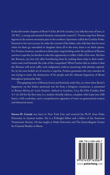 This gripping story of Roman honor and fortitude under fire, at a time when Rome's hegemony on the Italian peninsula was far from a foregone conclusion, is presented in Roman History for Latin Students: Ambush at Caudium, Livy Ab Urbe Condita Book 9.1-12.328 for the first time in a student-friendly edition, complete with Latin text (328 lines), a full vocabulary, and a comprehensive apparatus of notes on grammatical matters and rhetorical terms.
