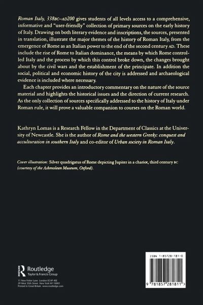 This work gives students of all levels access to a comprehensive collection of primary sources on the early history of Italy, from the early expansion of Roman power to the first emmergence of Italy as a unified and cultural political unit. The sources, presented in translation, cover the Roman conquest of Italy, the mechanisms used by Rome to govern Italy and the post-conquest process of Romanization. These include inscriptions, coins and archaeological evidence where necessary. Brief explanatory notes are given and each chapter has an introduction in which the nature of the source material is discussed, together with the major questions raised by that particular aspect of the subject.