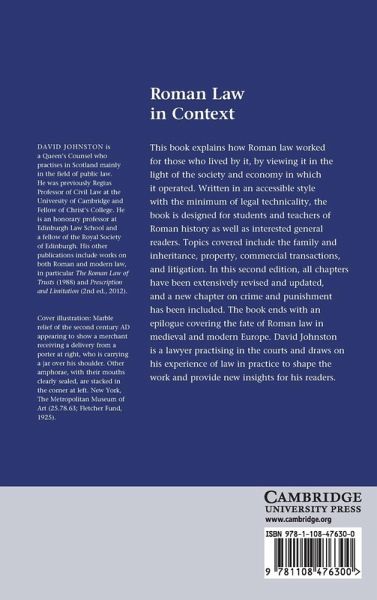 This book explains how Roman law worked for those who lived by it, by viewing it in the light of the society and economy in which it operated. Written in an accessible style with the minimum of legal technicality, the book is designed for students and teachers of Roman history as well as interested general readers. Topics covered include the family and inheritance, property and the use of land, business and commercial transactions, and litigation. In this second edition, all chapters have been extensively revised and updated, and a new chapter on crime and punishment has been included. The book ends with an epilogue covering the fate of Roman law in medieval and modern Europe. David Johnston is a lawyer practising in the courts and draws on his experience of law in practice to shape the work and provide new insights for his readers.