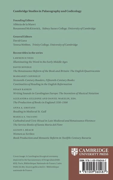Introduction 1. The 'Roman' Collection of Ordines in Metz, Lorsch and Tours 2. The 'Frankish' Collection in Verona, Regensburg, Nonantola and Corbie 3. Unique Collections of the Ordines from Worms and Wissembourg, St Amand and St Gallen 4. Liturgical 'Usefulness' and Reading the ordines romani 5. Orders for the Stational Mass in Frankish Cities and Monasteries 6. The Ordo Romanus of the Baptismal Scrutinies 7. Ordines for Special Occasions, Ordination and the Ember Days: The Contribution of Arn of Salzburg 8. Layout, Script and Language of the Ordo Romanus Manuscripts Conclusion.