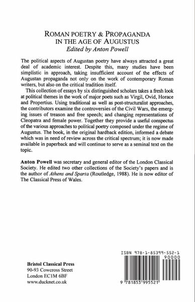 The political aspects of Augustan poetry have attracted much academic interest. The aim of this study is to take account of the effects of Augustan propaganda not only on the work of contemporary Roman writers, but also on the critical tradition itself. The six essays presented in this volume explore the political themes in the work of major poets such as Virgil, Ovid, Horace and Propertius. Using traditional as well as post-structuralist approaches, the essays examine the controversies of the Civil Wars, the emerging issues of treason and free speech and changing representations of Cleopatra and female power.