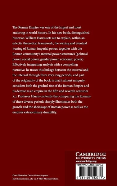 The Roman Empire was one of the largest and most enduring in world history. In his new book, distinguished historian W. V. Harris sets out to explain, within an eclectic theoretical framework, the waxing and eventual waning of Roman imperial power, together with the Roman community's internal power structures (political power, social power, gender power and economic power). Effectively integrating analysis with a compelling narrative, he traces this linkage between the external and the internal through three very long periods, and part of the originality of the book is that it almost uniquely considers both the gradual rise of the Roman Empire and its demise as an empire in the fifth and seventh centuries AD. Professor Harris contends that comparing the Romans of these diverse periods sharply illuminates both the growth and the shrinkage of Roman power as well as the Empire's extraordinary durability.