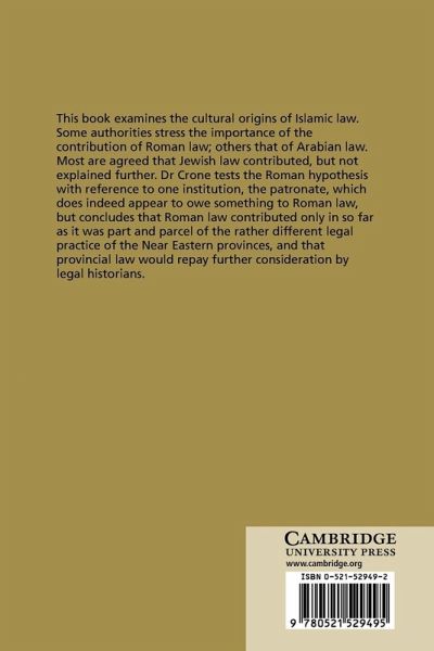 Through a study of the Islamic patronate, this book tests the hypothesis that Roman law was a formative influence on Islamic law. It concludes that Roman law contributed only in so far as it was part and parcel of the rather different legal practice of the Near Eastern provinces.