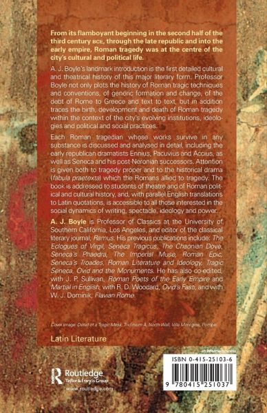 Analyzing the work of such names as Ennius, Pacuvius and Accius, as well as Seneca and his post-Neronian successors, Anthony J. Boyle delves into detailed discussion on every Roman tragedian whose work survives in substance today. Roman Tragedy examines: