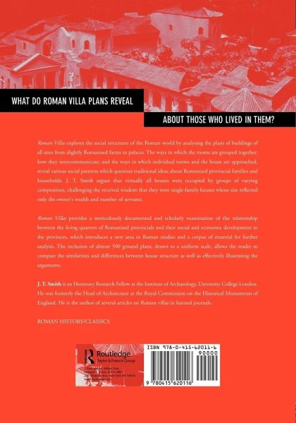Roman Villas explores the social structures of the Roman world by analysing the plans of buildings of all sizes from slightly Romanized farms to palaces. The ways in which the rooms are grouped together; how they intercommunicate; and the ways in which individual rooms and the house are approached, reveal various social patterns, which question traditional ideas about the Roman family and household. J. T. Smith argues that virtually all houses were occupied by groups of varying composition, challenging the received wisdom that they were single family houses whose size reflected only the owner's wealth and number of servants.