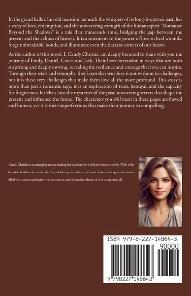 In the grand halls of an old mansion, beneath the whispers of its long-forgotten past, lies a story of love, redemption, and the unwavering strength of the human spirit. "Romance Beyond the Shadows" is a tale that transcends time, bridging the gap between the present and the echoes of history. It is a testament to the power of love to heal wounds, forge unbreakable bonds, and illuminate even the darkest corners of our hearts. As the author of this novel, I, Candy Christie, am deeply honored to share with you the journey of Emily, Daniel, Grace, and Jack. Their lives intertwine in ways that are both surprising and deeply moving, revealing the resilience and courage that love can inspire. Through their trials and triumphs, they learn that true love is not without its challenges, but it is these very challenges that make them love all the more profound. This story is more than just a romantic saga; it is an exploration of trust, betrayal, and the capacity for forgiveness. It delves into the mysteries of the past, uncovering secrets that shape the present and influence the future. The characters you will meet in these pages are flawed and human, yet it is their imperfections that make their journey so compelling.