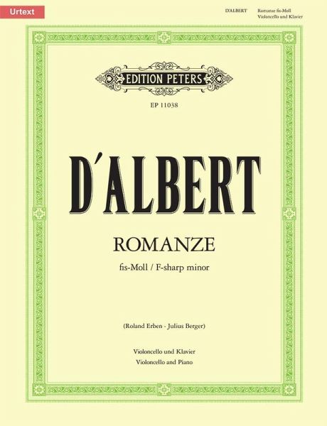 Romance in F# Minor for cello & piano, written by Scottish-born pianist and composer, Eugen D'Albert and edited by Roland Erben and Julius Berger. Romanze in fis-Moll des in Schottland geborenen Pianisten und Komponisten Eugen d'Albert, herausgegeben von Roland Erben und Julius Berger.