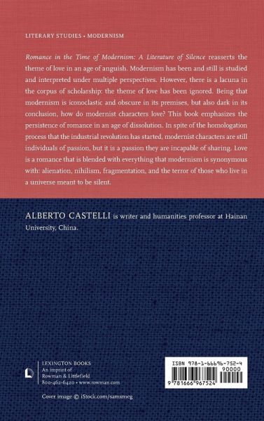 Romance in the Time of Modernism: A Literature of Silence reasserts the theme of love in an age of anguish. Modernism has been and still is studied and interpreted under multiple perspectives. However, there is a lacuna in the corpus of scholarship: the theme of love has been ignored. Being modernism iconoclastic and obscure in its premises, but also dark in its conclusion, how do modernist characters love? This book emphasizes the persistence of romance in an age of dissolution. In spite of the homologation process that the industrial revolution has started, modernist characters are still individuals of passion but it is a passion they are incapable of telling. Love is a romance that is blended with everything modernism is synonymous with: alienation, nihilism, fragmentation, the terror of those who live in a universe meant to be silent.