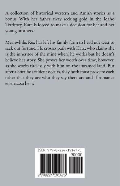 A collection of historical western and Amish stories as a bonus...With her father away seeking gold in the Idaho Territory, Kate is forced to make a decision for her and her young brothers. Meanwhile, Rex has left his family farm to head out west to seek out fortune. He crosses path with Kate, who claims she is the inheritor of the mine where he works but he doesn't believe her story. She proves her worth over time, however, as she works tirelessly with him on the untamed land. But after a horrific accident occurs, they both must prove to each other that they are who they say there are and if romance ensues...so be it.