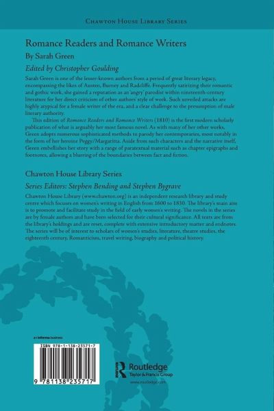 This edition of Romance Readers and Romance Writers (1810) is the first modern scholarly publication of what is arguably Green's most famous novel. As with many of her other works, Green adopts numerous sophisticated methods to parody her contemporaries.