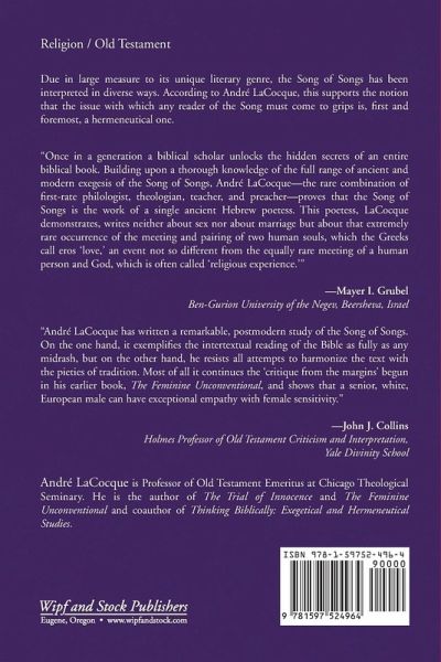Due in large measure to its unique literary genre, the Song of Songs has been interpreted in diverse ways. According to Andre LaCocque, this supports the notion that the issue with which any reader of the Song must come to grips is, first and foremost, a hermeneutical one.
