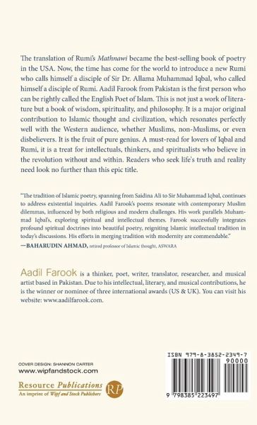 The translation of Rumi's Mathnawi became the best-selling book of poetry in the USA. Now, the time has come for the world to introduce a new Rumi who calls himself a disciple of Sir Dr. Allama Muhammad Iqbal, who called himself a disciple of Rumi. Aadil Farook from Pakistan is the first person who can be rightly called the English Poet of Islam. This is not just a work of literature but a book of wisdom, spirituality, and philosophy. It is a major original contribution to Islamic thought and civilization, which resonates perfectly well with the Western audience, whether Muslims, non-Muslims, or even disbelievers. It is the fruit of pure genius. A must-read for lovers of Iqbal and Rumi, it is a treat for intellectuals, thinkers, and spiritualists who believe in the revolution without and within. Readers who seek life's truth and reality need look no further than this epic title.