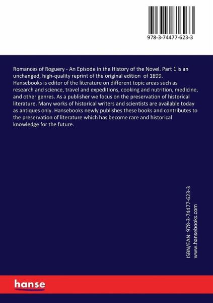 Romances of Roguery - An Episode in the History of the Novel. Part 1 is an unchanged, high-quality reprint of the original edition of 1899.Hansebooks is editor of the literature on different topic areas such as research and science, travel and expeditions, cooking and nutrition, medicine, and other genres. As a publisher we focus on the preservation of historical literature. Many works of historical writers and scientists are available today as antiques only. Hansebooks newly publishes these books and contributes to the preservation of literature which has become rare and historical knowledge for the future.