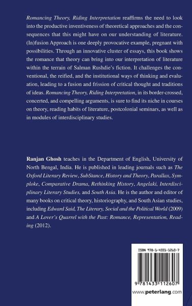 «Asserting that theory has consequences and requires responsiveness, Ranjan Ghosh gives us a volume that persuasively demonstrates the consequences of an (in)fusion approach to literary interpretation partly through the invited responses of critics who challenge, extend, and apply this hermeneutic theory. Ghosh skillfully sets up the demonstration with a provocative introduction that explains his (in)fusion approach as a creative cross-cultural appropriation of interpretive concepts and ideational correspondences. The collected essays then enact the very cross-cultural critical engagement Ghosh advocates, as they move from theory to practice beginning with theoretical comparisons to Foucauldean reception study and ending with an array of applied readings of Salman Rushdie's novels. Romancing Theory, Riding Interpretation definitely shows that theory is alive and well in the so-called post-theory age.» (Steven Mailloux, President's Professor of Rhetoric, Loyola Marymount University