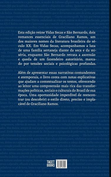 Esta edição de Romancistas Essenciais - Graciliano Ramos, reúne dois romances essenciais de um dos maiores nomes da literatura brasileira do século XX. Além de apresentar essas narrativas contundentes e atemporais, o livro conta com notas explicativas que ajudam a contextualizar os textos, oferecendo ao leitor uma compreensão mais rica das transformações políticas, sociais e culturais do Brasil de sua época. Uma oportunidade imperdível de reencontrar (ou descobrir) o estilo direto, preciso e implacável de Graciliano Ramos. Vidas Secas (1938) retrata a dura jornada de uma família de retirantes no sertão nordestino, marcada pela miséria, pela seca e pelo silêncio. Graciliano Ramos dá voz à desumanização dos pobres, revelando sua luta pela sobrevivência em meio à opressão social e climática. A narrativa seca e essencialista traduz a aridez da própria existência. São Bernardo (1934) acompanha a trajetória de Paulo Honório, um ex-jagunço que se torna fazendeiro, obcecado por poder e controle. O romance mergulha nas contradições do narrador, expondo seu autoritarismo, sua solidão e o fracasso de seus vínculos afetivos. Ambas as obras revelam a visão crítica e profundamente humana de Graciliano sobre o Brasil.