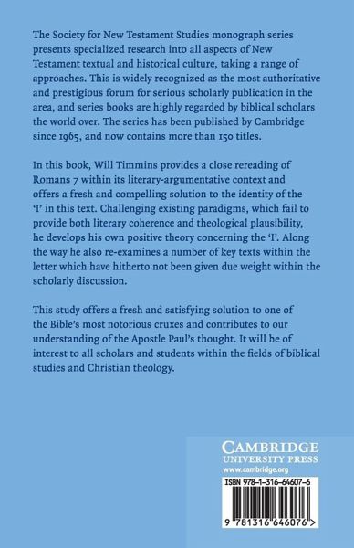 The book will be of interest to all scholars and students within the fields of biblical studies and theology. It offers a fresh and satisfying solution to the notorious crux of Romans 7 - the identity of the 'I' - and contributes to our understanding of both the apostle Paul's thought and of Christian theology.