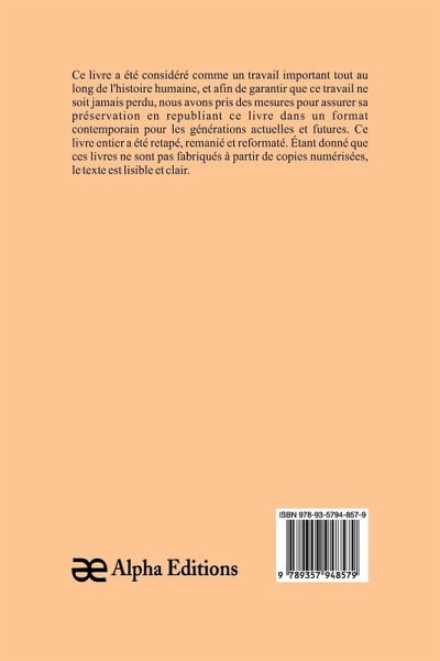 Romans et contes, est un livre classique et rare, qui a été considéré comme important tout au long de l'histoire de l'humanité, et pour que cet ouvrage ne soit jamais oublié, chez Alpha Editions, nous avons fait des efforts pour sa préservation en rééditant ce livre dans un format moderne pour les générations présentes et futures. . Tout ce livre a été reformaté, retapé et repensé. Ces livres ne sont pas constitués de copies numérisées de leur ¿uvre originale et leur texte est donc clair et lisible. Ce volume remarquable s'inscrit dans les genres de Language and Literatures Romance literatures French, Italian, Spanish, Portuguese