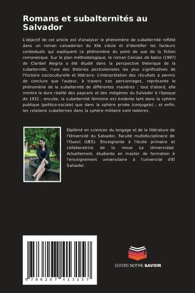 L'objectif de cet article est d'analyser le phénomène de subalternité reflété dans un roman salvadorien du XXe siècle et d'identifier les facteurs contextuels qui expliquent ce phénomène du point de vue de la fiction romanesque. Sur le plan méthodologique, le roman Cenizas de Izalco (1997) de Claribel Alegría a été étudié dans la perspective théorique de la subalternité, l'une des théories postcoloniales les plus significatives de l'histoire socioculturelle et littéraire. L'interprétation des résultats a permis de conclure que l'auteur, à travers ses personnages, représente le phénomène de la subalternité de différentes manières ; tout d'abord, elle montre la dure réalité des paysans et des indigènes du Salvador à l'époque de 1932 ; ensuite, la subalternité féminine est évidente tant dans la sphère publique (politico-sociale) que dans la sphère privée (conjugale) ; et enfin, les relations subalternes dans la sphère militaire sont notoires.
