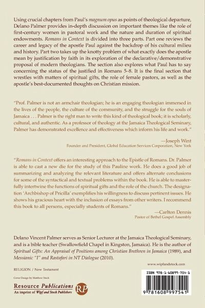 Using crucial chapters from Paul's magnum opus as points of theological departure, Delano Palmer provides in-depth discussion on important themes like the role of first-century women in pastoral work and the nature and duration of spiritual endowments. Romans in Context is divided into three parts. Part one reviews the career and legacy of the apostle Paul against the backdrop of his cultural milieu and history. Part two takes up the knotty problem of what exactly does the apostle mean by justification by faith in its exploration of the declarative/demonstrative proposal of modern theologians. The section also explores what Paul has to say concerning the status of the justified in Romans 5-8. It is the final section that wrestles with matters of spiritual gifts, the role of female pastors, as well as the apostle's best-documented thoughts on Christian mission.