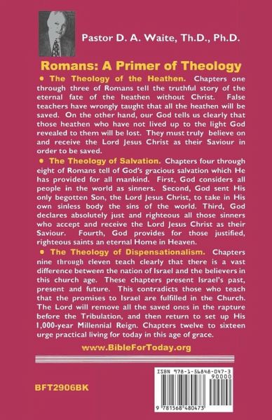 This book on Romans is from expository preaching sermons by Pastor D. A. Waite, Th.D., Ph.D. It brings to the mind of readers two things: (1)the meaning of the words in the verses and (2) the practical appliction of those words to the lives of both saved and lost people.