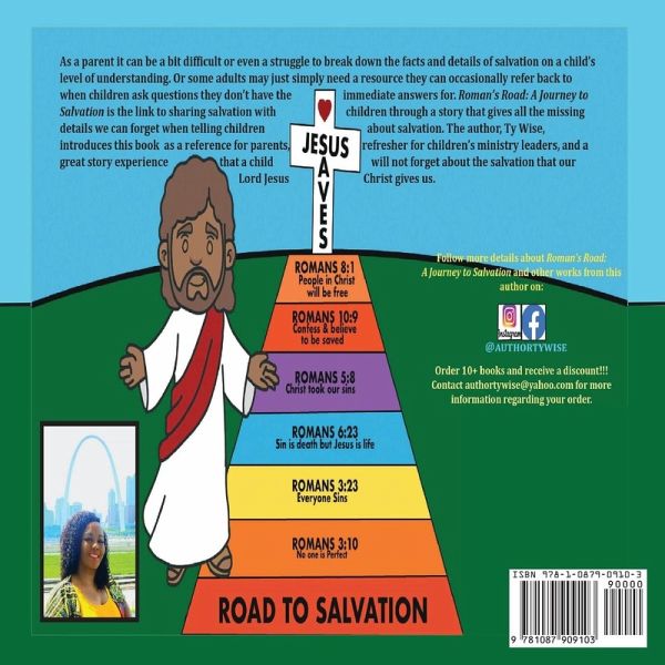 As a parent it can be a bit difficult or even a struggle to break down the facts and details of salvation on a child's level of understanding. Or some adults may just simply need a resource they can occasionally refer to when children ask questions they don't have the immediate answers for. Roman's Road: A Journey to Salvation is the link to sharing salvation with children through a story that gives all the missing details we can forget when telling children about salvation. The author, Ty Wise, introduces this book as a reference for parents, refresher for children's ministry leaders, and a great story experience that a child will not forget about the salvation that our Lord Jesus Christ gives us.