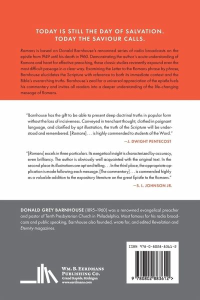 Romans is based on Donald Barnhouse’s renowned series of radio broadcasts on the epistle from 1949 until his death in 1960. Demonstrating the author’s acute understanding of Romans and heart for effective preaching, these classic studies reverently expound even the most difficult passage in a clear way. Examining the Letter to the Romans phrase by phrase, Barnhouse elucidates the Scripture with reference to both its immediate context and the Bible’s overarching truths. Barnhouse’s zeal for a universal appreciation of the epistle fuels his commentary and invites all readers into a deeper understanding of the life-changing message of Romans.