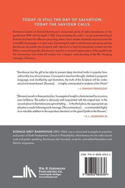 Romans is based on Donald Barnhouse’s renowned series of radio broadcasts on the epistle from 1949 until his death in 1960. Demonstrating the author’s acute understanding of Romans and heart for effective preaching, these classic studies reverently expound even the most difficult passage in a clear way. Examining the Letter to the Romans phrase by phrase, Barnhouse elucidates the Scripture with reference to both its immediate context and the Bible’s overarching truths. Barnhouse’s zeal for a universal appreciation of the epistle fuels his commentary and invites all readers into a deeper understanding of the life-changing message of Romans.…mehr