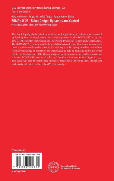 This book highlights the latest innovations and applications in robotics, as presented by leading international researchers and engineers at the ROMANSY 2020, the 23rd CISM IFToMM Symposium on Theory and Practice of Robots and Manipulators. The ROMANSY symposium is the first established conference that focuses on robotics theory and research, rather than industrial aspects. Bringing together researchers from a broad range of countries, the symposium is held bi-annually and plays a vital role in the development of the theory and practice of robotics, as well as the mechanical sciences. ROMANSY 2020 marks the 23rd installment in a series that began in 1973. The event was also the first topic-specific conference of the IFToMM, though not exclusively intended for the IFToMM community.