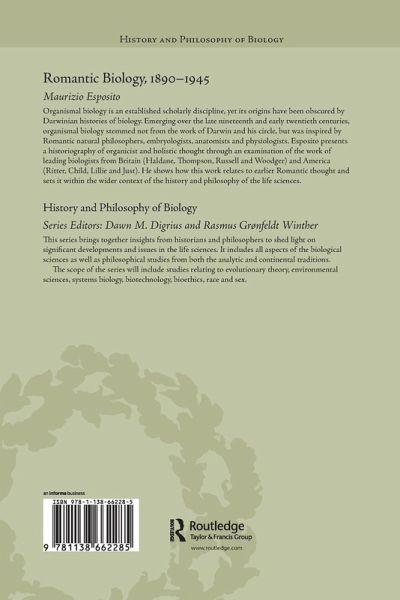 In this book, Esposito presents a historiography of organicist and holistic thought through an examination of the work of leading biologists from Britain and America. He shows how this work relates to earlier Romantic tradition and sets it within the wider context of the history and philosophy of the life sciences.