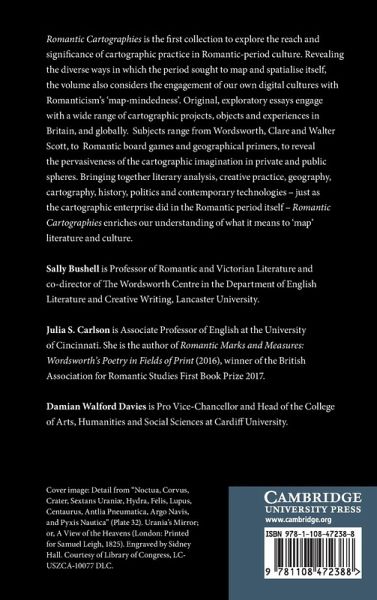 Romantic Cartographies is the first collection to fully explore the reach and significance of cartographic practice in Romantic-period culture. Revealing the diverse ways in which the period mapped itself, the volume also considers our contemporary engagements with Romanticism from the perspective of our own spatialised culture.