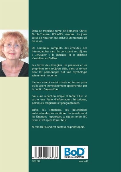 Dans ce tome 3, Nicole-Thérèse ROLAND évoque toujours Jésus de Nazareth qui arrive à un moment clé de sa vie. De nombreux complots, des émeutes, des interrogatoires sans fin ponctuent ses séjours à Jérusalem; la défiance et la délation s'installent en Galilée.Les textes des évangiles, des psaumes et des prophètes sont toujours cités, dans ce roman dont les personnages ont une psychologie sciemment moderne.L'auteur a forcé certains traits ou termes pour qu'ils soient immédiatement appréhendés par le public d'aujourd'hui.Sous une rédaction simple et facile à lire, se cache une foule d'informations historiques, sociales, politiques, religieuses ou géographiques.Enfin, les situations, les descriptions architecturales et les anecdotes rapportées se situent entre 150 avant et 70 après Jésus Christ