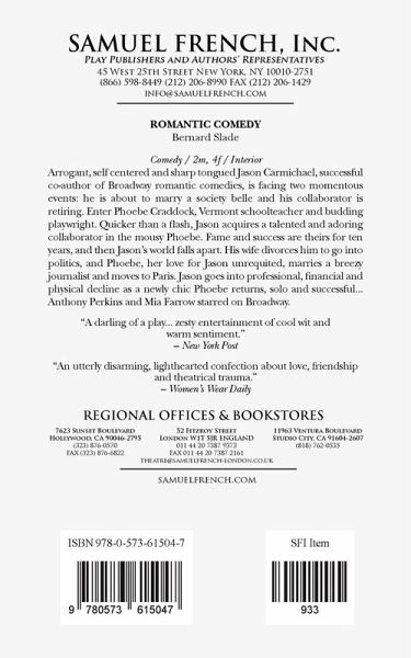 Full Length, Comedy Characters: 2 male, 4 female Interior Set Arrogant, self centered and sharp tongued Jason Carmichael, successful co-author of Broadway romantic comedies, is facing two momentous events: he is about to marry a society belle and his collaborator is retiring. Enter Phoebe Craddock, Vermont schoolteacher and budding playwright. Quicker than a flash, Jason acquires a talented and adoring collaborator in the mousy Phoebe. Fame and success are theirs for ten years an