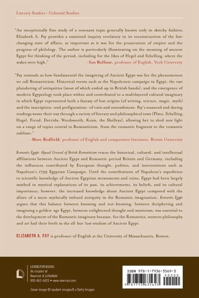 Romantic Egypt argues that the balance between knowing and not-knowing, between deciphering and imagining an archaic Egypt, was essential to the development of the Romantic imaginary, particularly in Britain and Germany: for the Romantics western philosophy and art had their birth in Ancient Egypt.