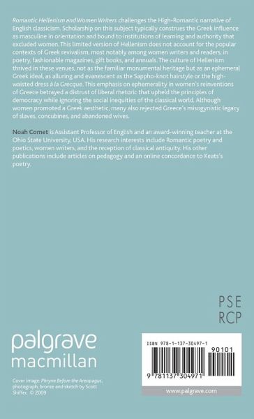 "...a refreshing new look at Greek influences in the Romantic period... While the three chapters on Aikin, Hemans, and Landon are examples of scholarship at its most impressive, innovative, and convincing, my favourite chapters are, after Comet's simply remarkable and articulate 'Introduction', the first chapter, 'Hellenism and Women's Print Culture', and the final pages, 'Conclusion: Elizabeth Barrett Browning and the Reception of Romantic Women's Hellenism'. No reader interested either in Romanticism or in the English reception of Greece, in any period, should miss the opportunity of studying closely this astute, concise, and engaging account by Noah Comet." K. M. Wheeler, The BARS Review