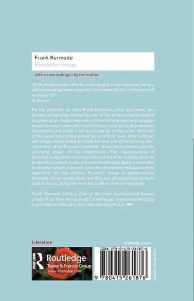 For the past four decades Frank Kermode, critic and writer, has steadily established himself as one of the most brilliant minds of his generation. Questioning the public's harsh perception of 'the artist', Kermode at the same time gently pokes fun at artists' own, often inflated, self-image. He identifies what has become one of the defining characteristics of the Romantic tradition - the artist in isolation and the emerging power of the imagination. Back in print after an absence of over a decade, The Romantic Image is quintessential Kermode. Enlightenment has seldom been so enjoyable!