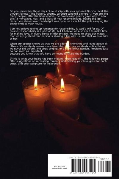 How to put the romance back in your marriage. If the flames of love are dimming in your relationship, then this book will tell you how to turn up the heat once again! Offers a Biblical perspective on love and romance