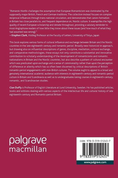 This book explores various forms of cultural influence and exchange between Britain and the Nordic countries in the late eighteenth century and romantic period. Broadly new-historicist in approach, but drawing also on influential descriptions of genre, discipline, mediation, cultural exchange, and comparative methodologies, these essays not only constitute a substantial and innovative contribution to scholarly understanding of the development of romanticisms and romantic nationalisms in Britain and the Nordic countries, but also describe a pattern of cultural encounter which was predicated upon exchange and a sense of commonality rather than upon the perception of difference or alterity which has so often been discerned by critical descriptions of British romantic-period engagements with non-British cultures. The volume ought to appeal to a broad and genuinely international academic audience with interests in eighteenth-century and romantic-period culture in Britain and Scandinavia aswell as to undergraduates taking courses in eighteenth-century, romantic, and Scandinavian studies.