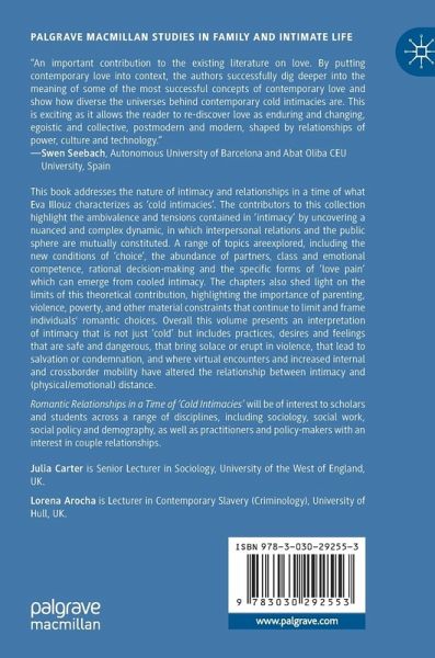 Romantic Relationships in a Time of 'Cold Intimacies' will be of interest to scholars and students across a range of disciplines, including sociology, social work, social policy and demography, as well as practitioners and policy-makers with an interest in couple relationships.