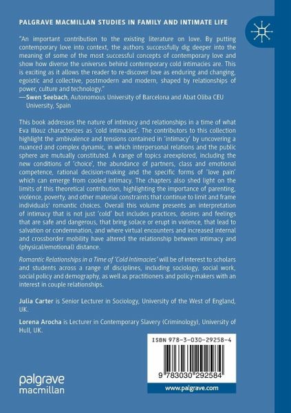 Romantic Relationships in a Time of 'Cold Intimacies' will be of interest to scholars and students across a range of disciplines, including sociology, social work, social policy and demography, as well as practitioners and policy-makers with an interest in couple relationships.