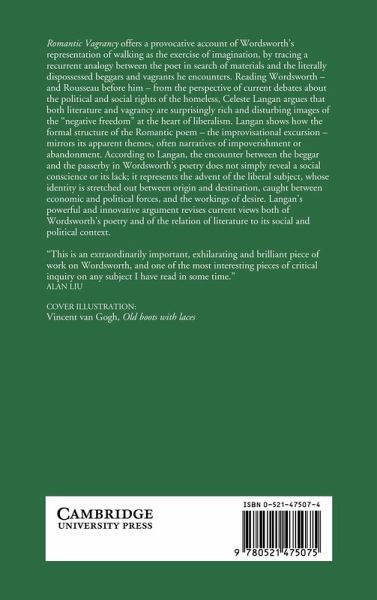 Romantic Vagrancy offers a provocative account of Wordsworth's representation of walking as the exercise of imagination, by tracing a recurrent analogy between the poet in search of materials and the literally dispossessed beggars and vagrants he encounters. Reading Wordsworth - and Rousseau before him - from the perspective of current debates about the political and social rights of the homeless, Celeste Langan argues that both literature and vagrancy are surprisingly rich and disturbing images of the "negative freedom" at the heart of liberalism. Langan shows how the formal structure of the Romantic poem - the improvisational excursion - mirrors its apparent themes, often narratives of impoverishment of abandonment. According to Langan, the encounter between the beggar and the passerby in Wordsworth's poetry does not simply reveal a social conscience or its lack; it represents the advent of the liberal subject, whose identity is stretched out between origin and destination, caught between economic and political forces, and the workings of desire. Langan's powerful and innovative argument revises current views both of Wordsworth's poetry and of the relation of literature to its social and political context.